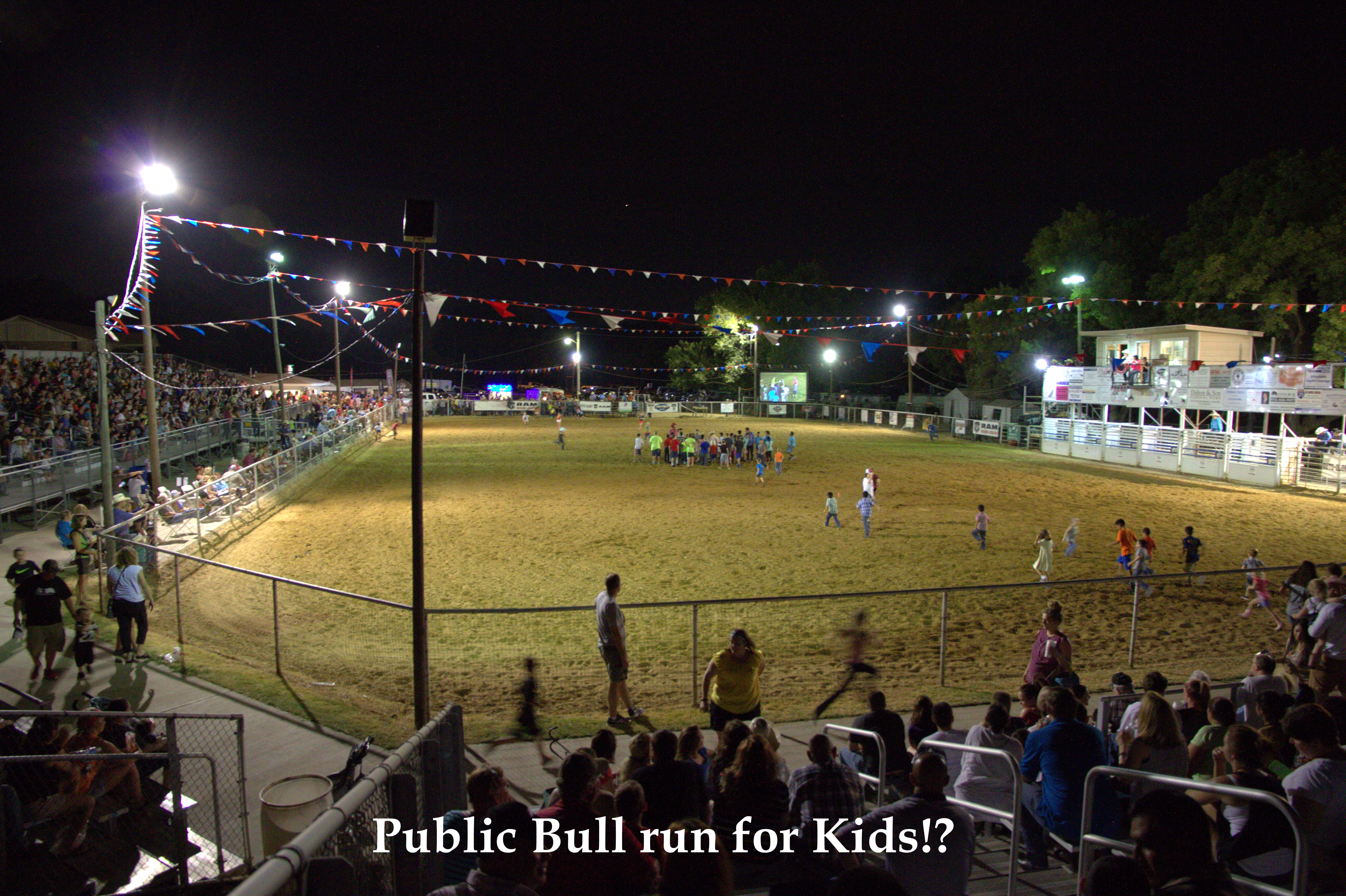 Ns. tauko-ohjelmana oli lapsille mullikan kiinniotto, jossa yleisöstä kaikki halukkaat alle 18-vuotiaat pääsivät tavoittelemaan yhteislähdöllä vasikan persuksiin kiinnitettyä lippulappua. Meille ao. ohjelmanumero tarjosi sykähdyttäviä elämyksiä, kun jännitimme ettei kukaan pienimmistä taaperoista jäisi joko vasikan tai isompien teinien polkemaksi.