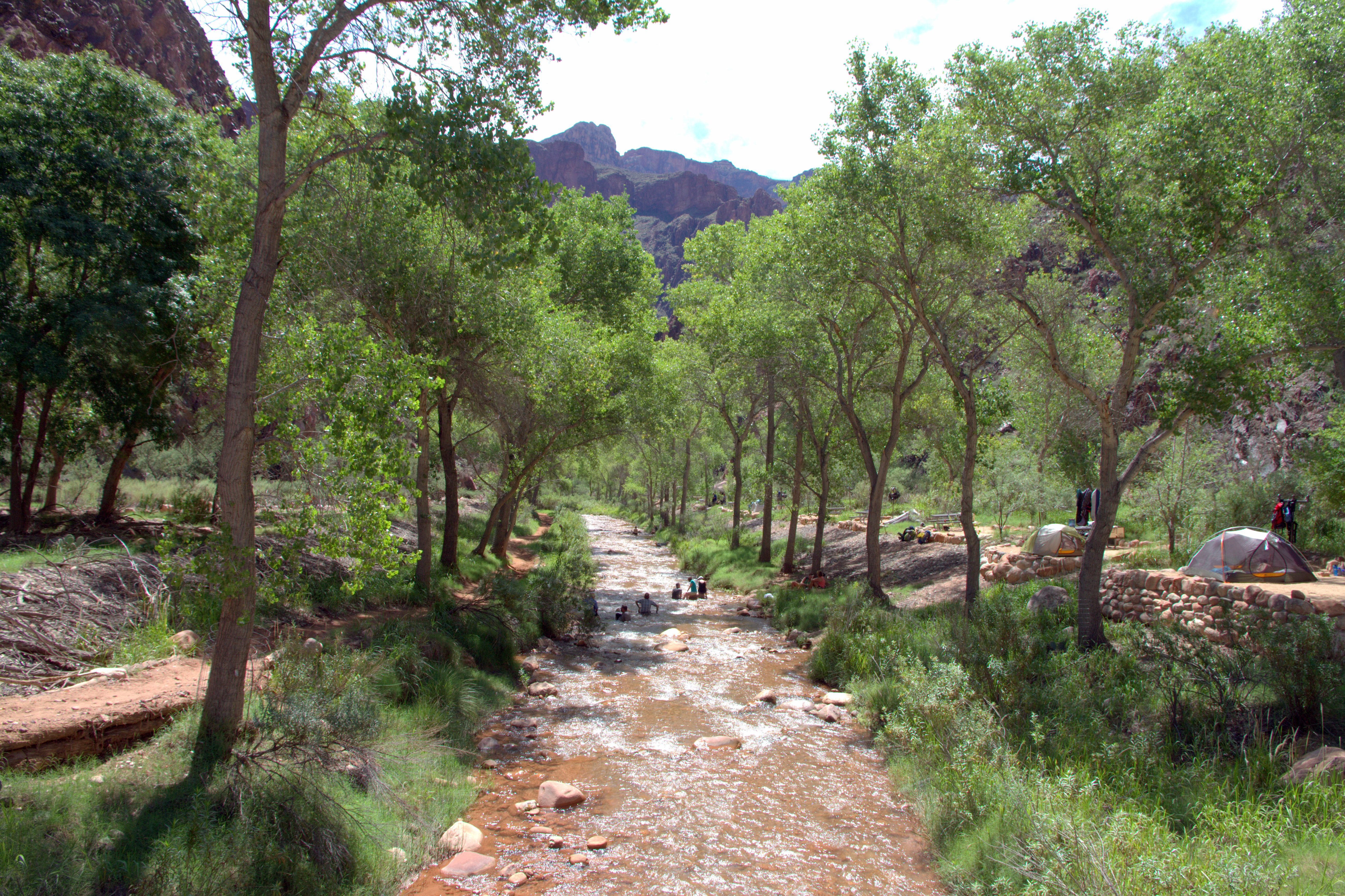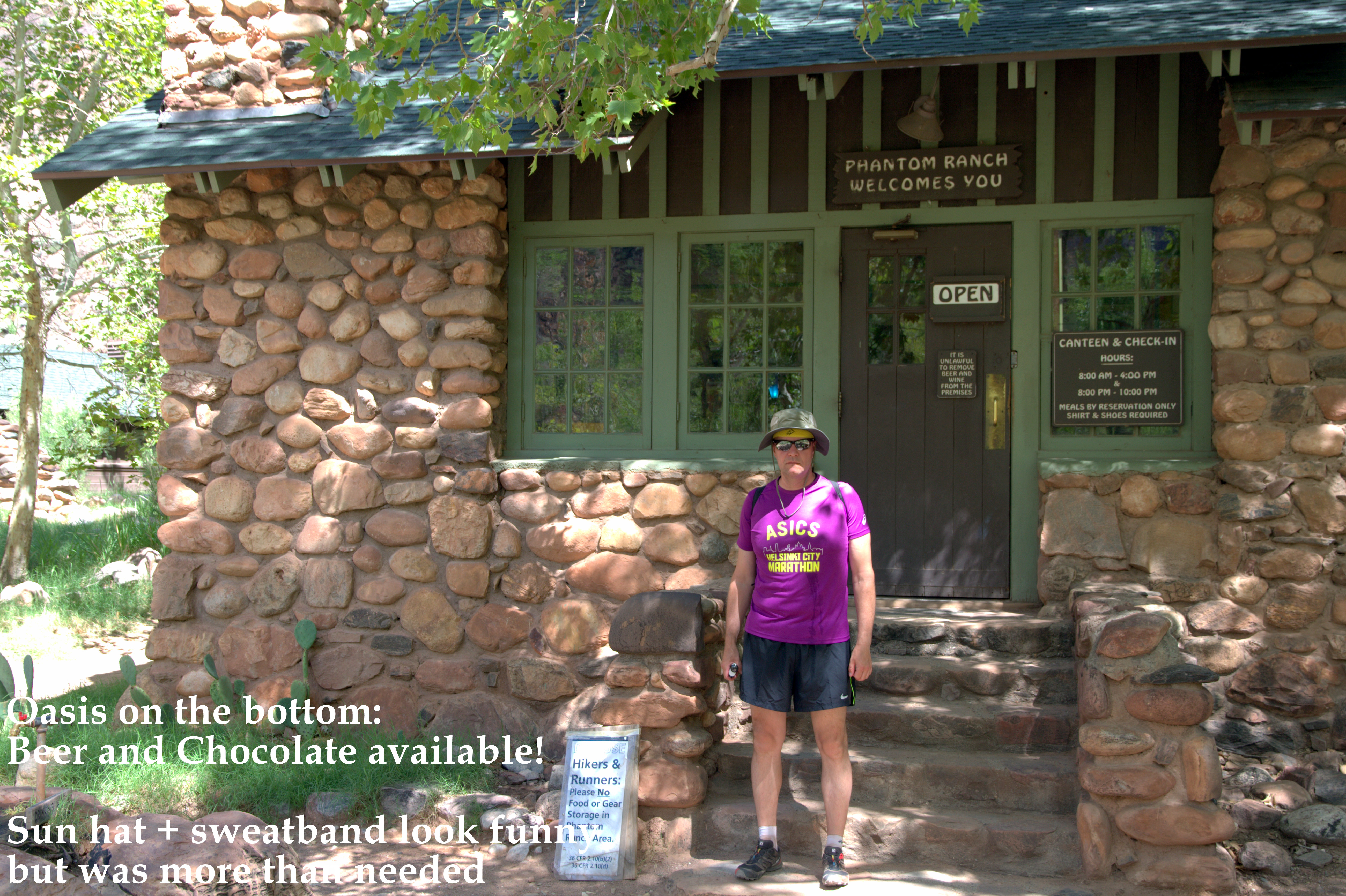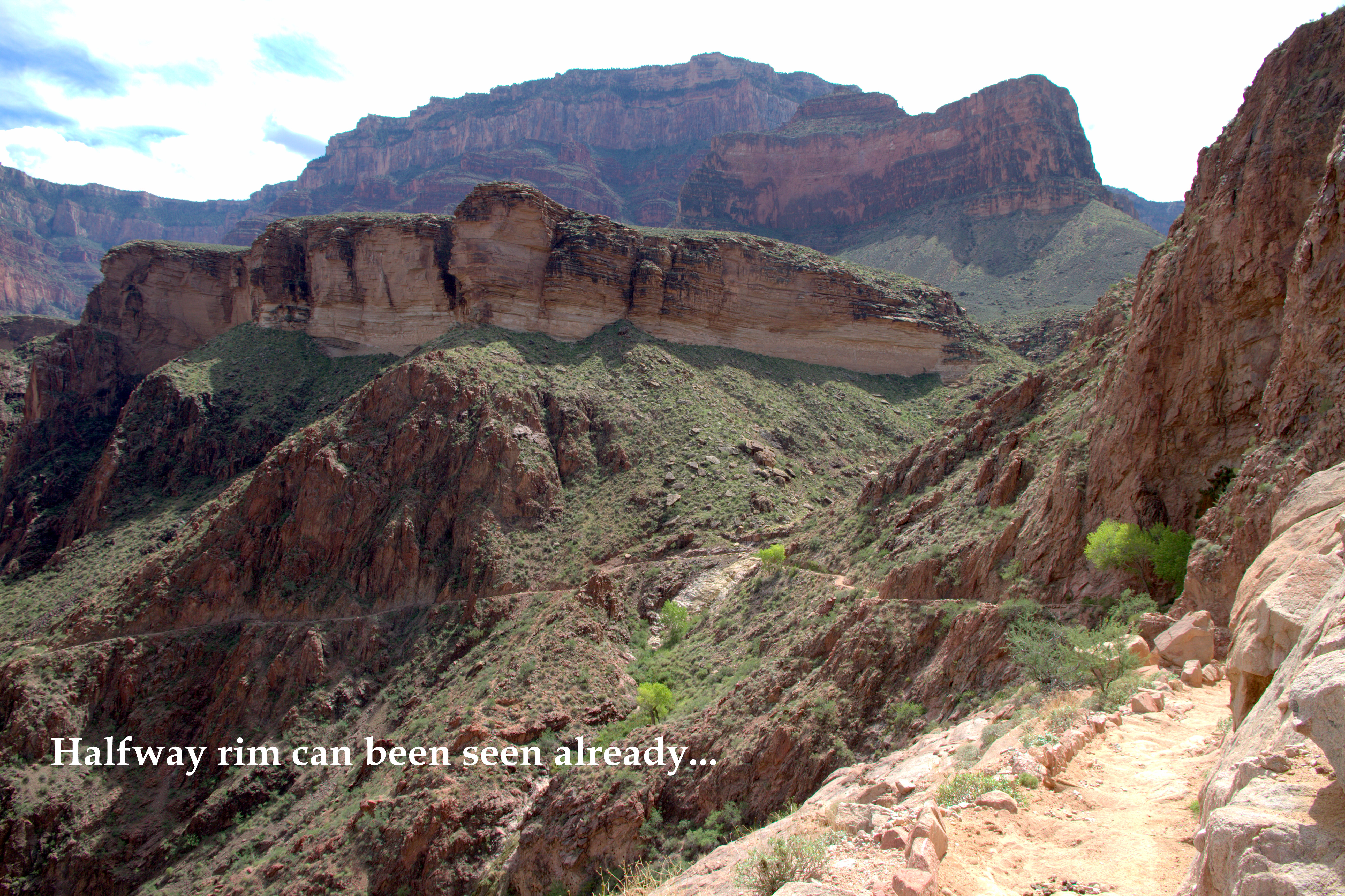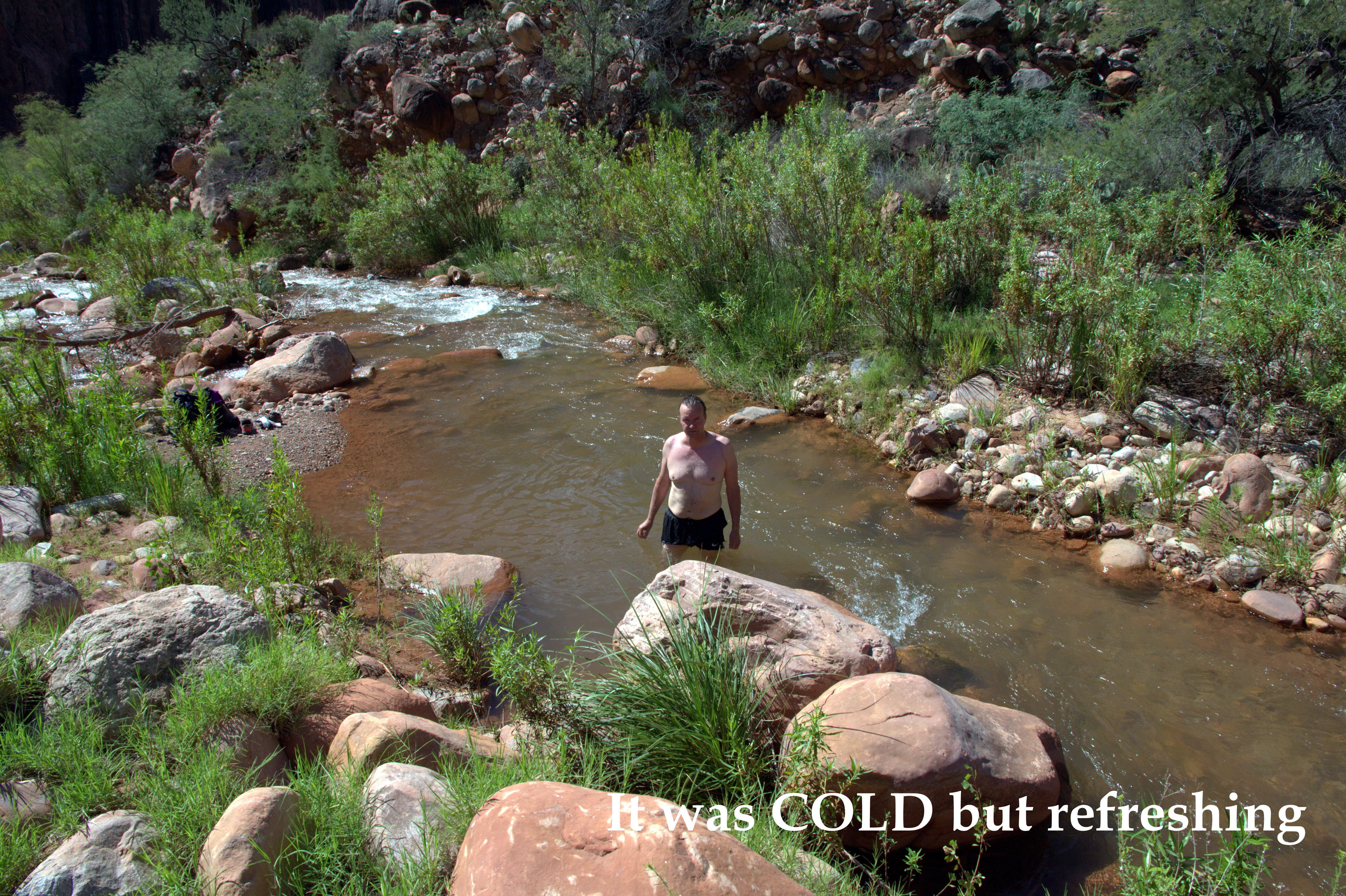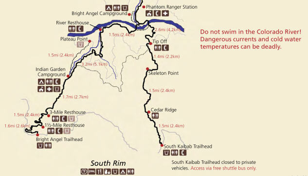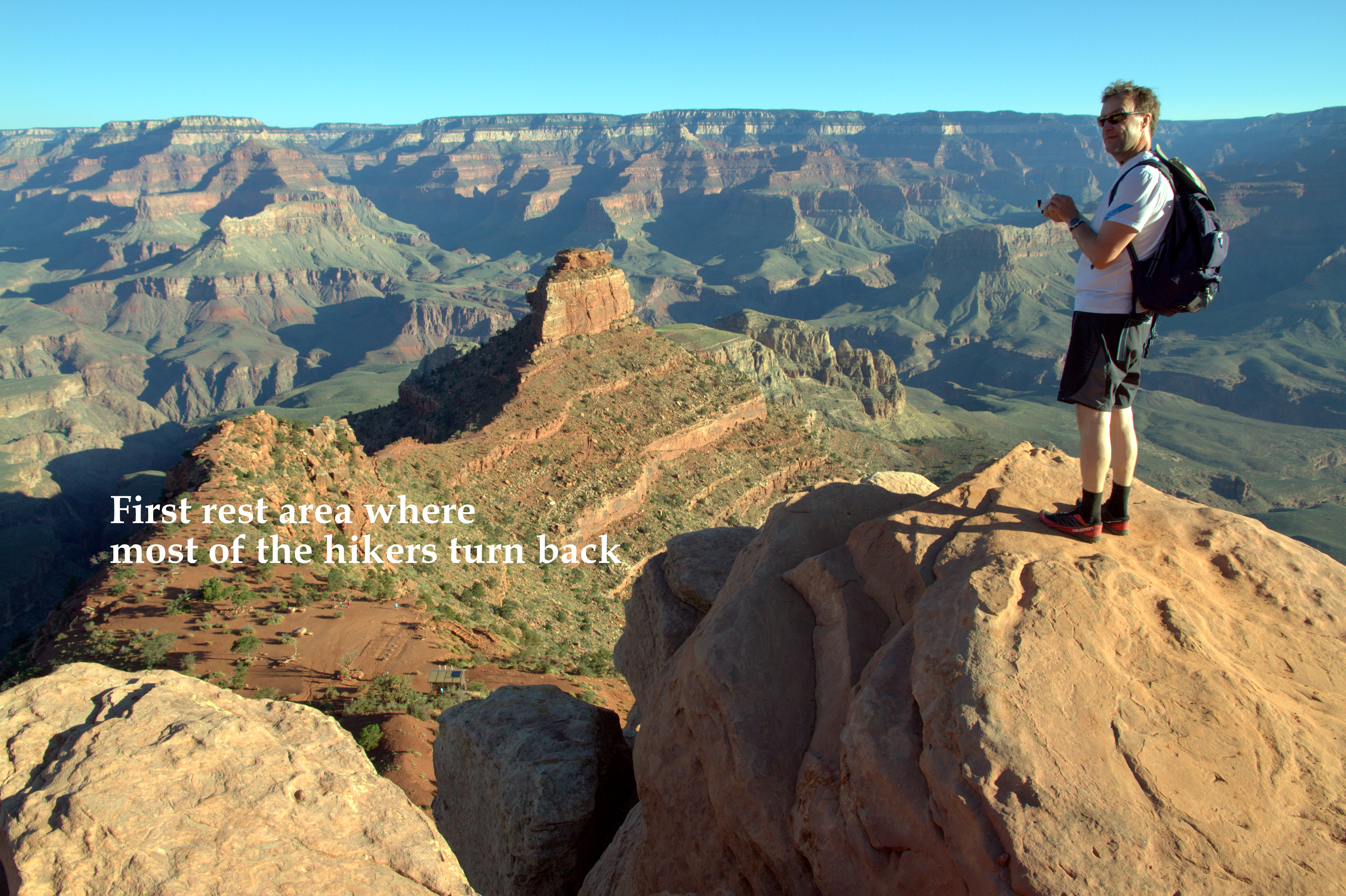 It was hard day, near 40 km to walk from Yavapai lodge to rim, down to river, back to rim and finally back to Yavapai lodge. We used near entire daylight time to do it. It’s not only a level change (about 1600m) or distance to make it so hard. There was 30 degr. C on the Rim and 36C on the river. My drank liquid 5 liter during the day.