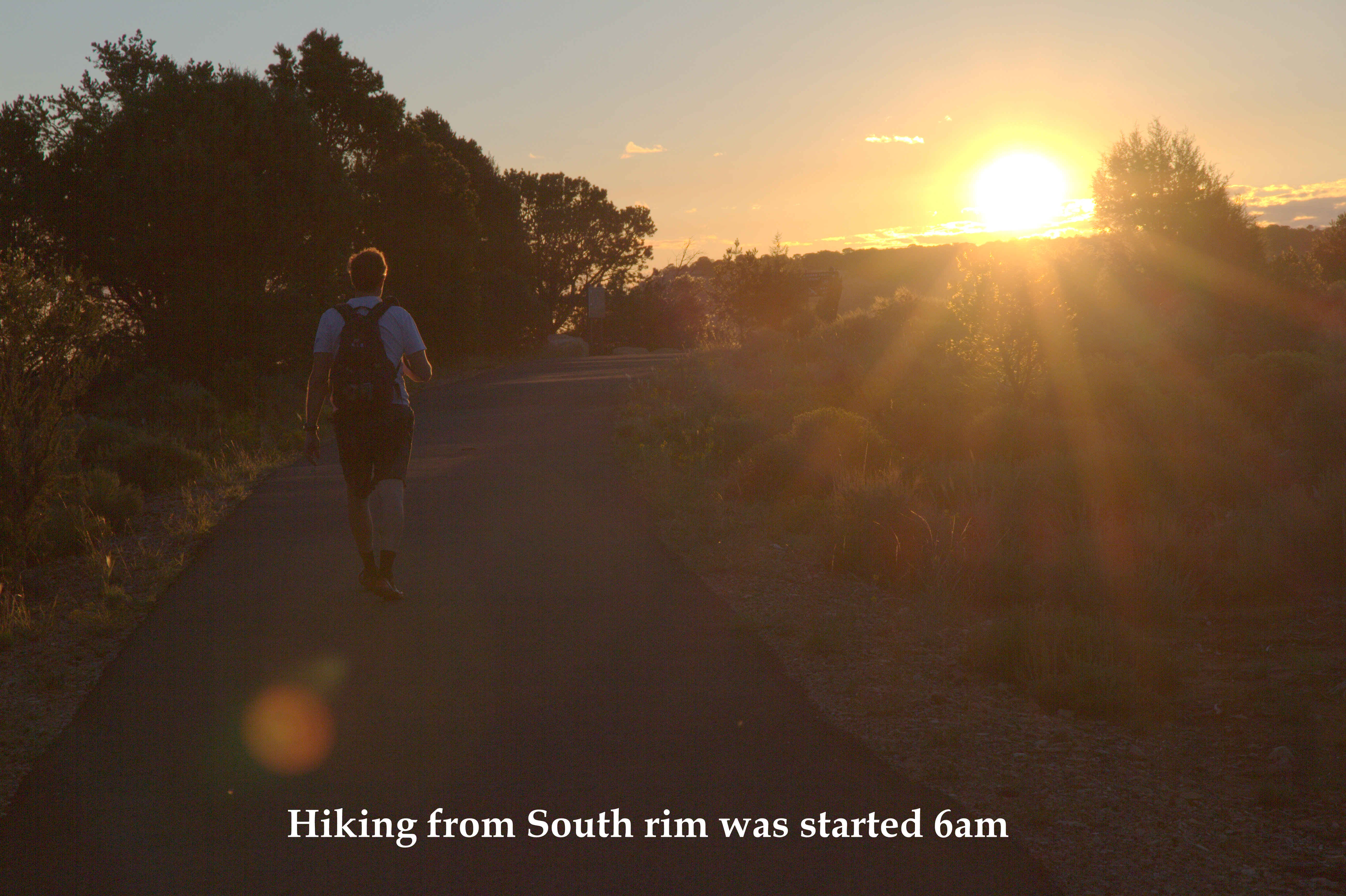 Anyhow, we arrived early enough to see sunset on the South rim of Grand Canyon. After that we just made needed preparations for next day hiking and sweet dreams…